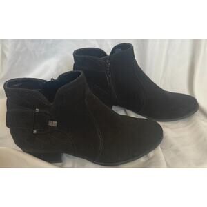 Unisa Womens Ankle Boots 8.5 Wide Black Suede Zip Buckle Low Heel Booties Comfort