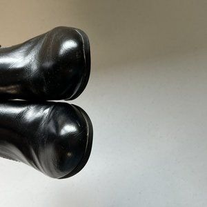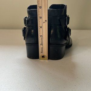 Unisa Womens Black Faux Leather Ankle Booties Size 6M Zip Up Buckles Round Toe