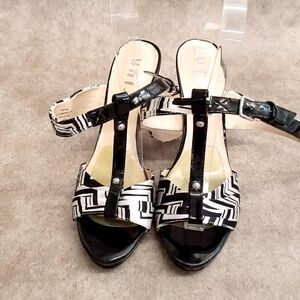 Unisa Womens Deana Size 8.5 Black White Open Toe Double Strap 4" Heels