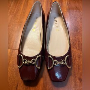 Unisa Women's Deep Red Loafers with Gold Detail Size 8.5