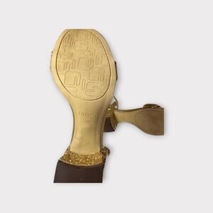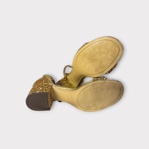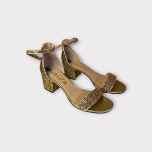 Unisa Women's Gold Glitter Block Heel Sandals Size 8M | Ankle Strap