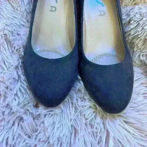 Perfect condition never worn outside. Tried on did not fit. Deep gray man-made suede women's size 7.