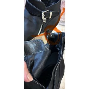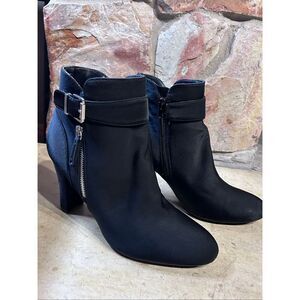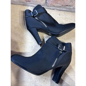 Unisa Black Fabric Ankle Heeled Booties Size10M Buckle & Side Zipper