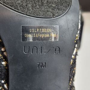 Unisa black, white & gold high heeled shoes. Size 7. Zips up in the back. 3.25" heels.