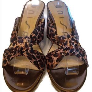 Cute pair of Unisa cheetah, knotted, slide wedge sandals. Pre-owned with some wear on soles and heels. Size: 6.5M (ref 124)