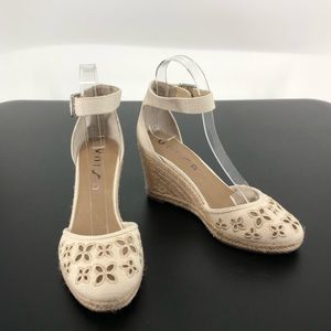 Unisa Unareia Cream Embroidered Eyelet Ankle Strap Espadrille Wedge Sandals 8