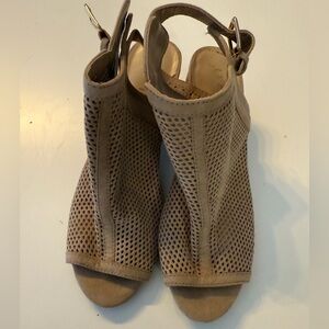 Tan/cream colored, block heel open-toed booties size 7. Great condition