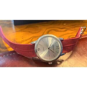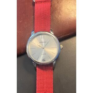 Unisex 38mm Silver Tone Embassy Watch with Red Canvas Band