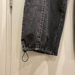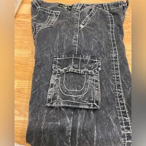 The True Religion Bobbi Low Rise Baggy Cargo Jeans feature a Y2K-inspired baggy wide-leg fit, a low-rise waist, and side cargo pockets.