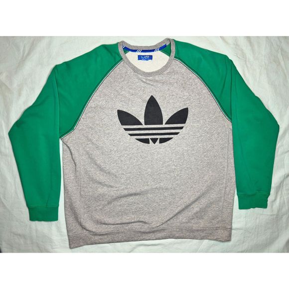 Unisex, Adidas Sweatshirt No Hood, 2XL, Green and Grey