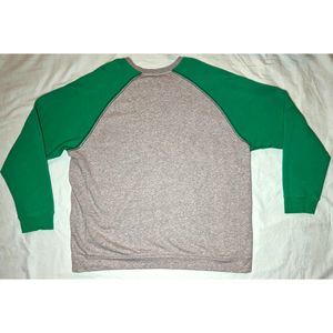 Like New, Hoodless Green and Grey Sweatshirt with 2 very small spots on the sleeve.