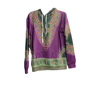 Unisex African Print Dashiki Hooded Pullover Size X-Small New Without Tags