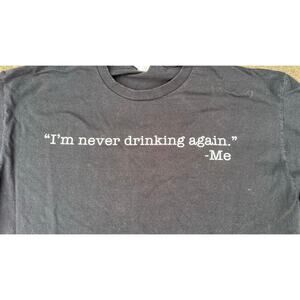 Unisex Black Graphic Print Never Drinking Again Short Sleeve Tee Shirt Size XL