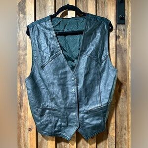 Unisex Black Leather Vest w/ Snap Button Closure XL
