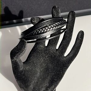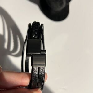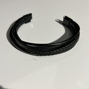 Elevate your style with this unisex black leather bracelet, an embodiment of rugged elegance. Whether you're dressing up or down, this accessory adds a touch of timeless sophistication to any look.