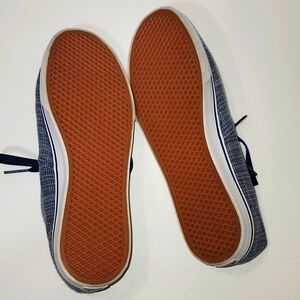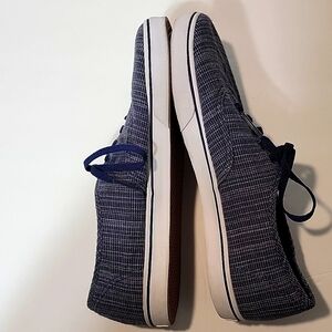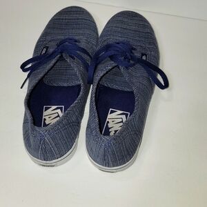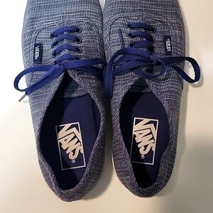 These Vans are in excellent condition with just that little bit of heel drag you can barely see. Perfect for so many occasions and men or women. men's 6.5, women's 8. Navy/white windowpane canvas.