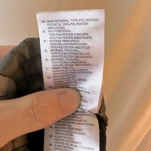 One size fits small/medium. Men’s but I wear them. Calabasas Adidas sweat pants. Silky smooth. 100% polyester. Limited edition no longer made. Grey/olive green color