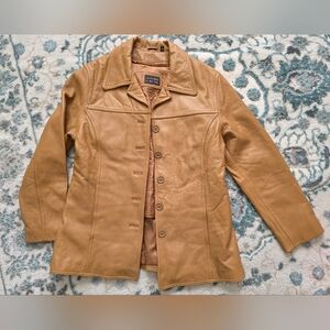 Unisex Camel Tan Collar Button Down Leather Trench Coat Jacket Thermolite M