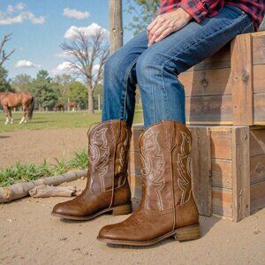 These stylish kids cowboy boots feature classic embroidery for a timeless western look.With a roomy shaft and convenient pull tabs,the toddler cowboy boots are easy for little ones to put on and take off all by themselves