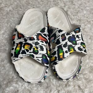 Unisex Cole Haan Rubber Slip on Slide Sandals Printed multi color Graffiti W SZ8 M SZ6.pre owned in good used condition signs of wear on the inner and outer soles.See all pictures any questions please message.E3