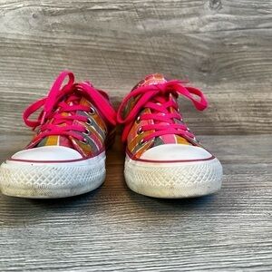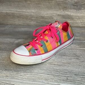 Unisex Converse All Star low top neon striped sneaker size 6 woman’s and 4 mens