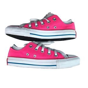 Unisex CTAS low top double upper canvas sneakers. Size 3 men/5 women. Neon pink and white color outer. Turquoise inside. Excellent preowned condition! Very light signs of wear to rubber. Cute pair of shoes 🥰
