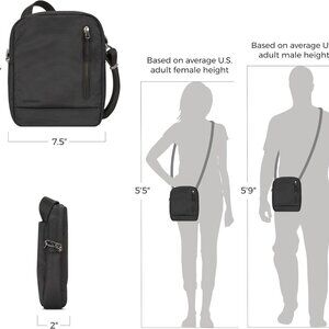 Features: Sleek and compact crossbody with a secure, modern design. Equipped with a 5-point anti-theft security system, slash-resistant mesh panels, and RFID-blocking organizer — perfect for keeping your valuables safe while on the go. Multiple compartments including a main organization panel, slip pocket, zippered mesh pocket, pen loops, front zip pocket, and quick-access rear slip pocket. Adjustable strap for comfortable, customizable wear.