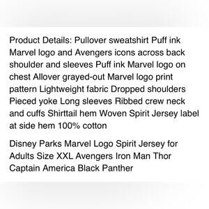 Disney Parks Marvel Logo Spirit Jersey Avengers Iron Man Thor Captain America Black Panther In excellent condition bundle for more savings and next day shipping!! Comment with questions. Thank you for visiting my closet!! Questions? Leave a comment below!