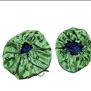 Unisex Double Layer Satin Hair Bonnet in Green Cowrie Print w/ Adjustable Band