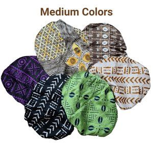 Elevate your hair game & sleep comfortably with this stunning Large African Print Reversible Satin Bonnet. From Seam to Seam, open diameter is ~18" medium & ~24" large. The bonnet was hand made in Nigeria of high-quality satin material that ensures your hair remains moisturized and healthy. This headdress is the best to protect all hair types from curls, kinks, braids, or locs, and features an adjustable elastic band that fits comfortably around your head.
