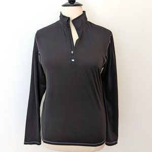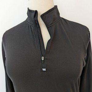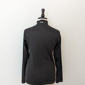 Long sleeves, half zip, no pockets, moisture wicking DuoDry fabric, reflective C9 logo on the back of the neck.