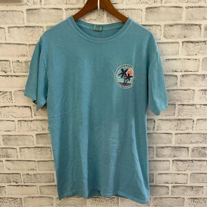 Unisex. Men’s. Womens. Blue 84. Fripp Island, SC. Blue tropical graphic t-shirt. Preowned condition. No stains/tears. Size Medium.
