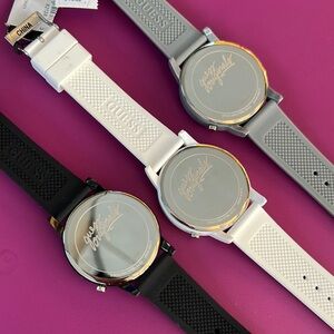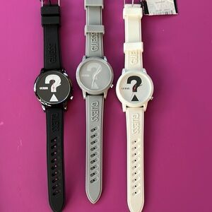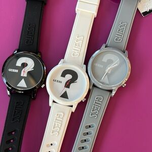 UNISEX Set of three GUESS watches in black, gray, and white. Stylish and modern design.