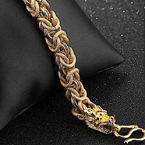 Unisex Gold 24K GP Dragon Pulseira Chain Bracelet