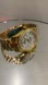 Luxurious style watch in gold. White dial with crystal diamond accents. Day-Date feature.