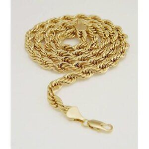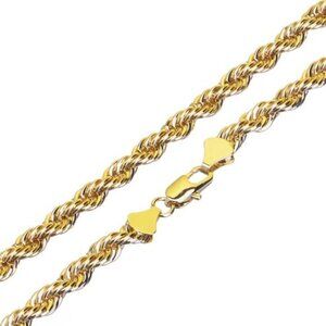 Unisex Gold Plated Solid Chain 24" 7mm Rope Chain Necklace 14K Gold Plated