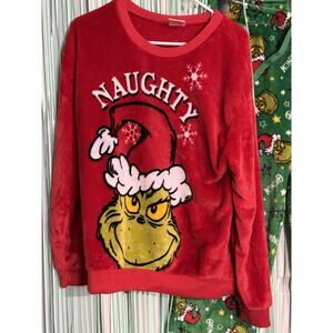 Unisex Grinch Pajama Set, “Naughty” Red Sweatshirt, Green Pants, Large
