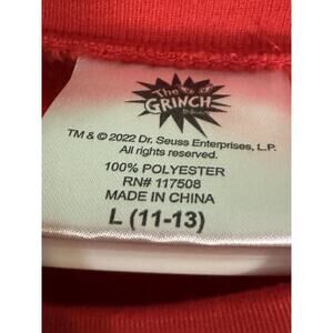 This unisex Grinch pajama set features a "Naughty" red sweatshirt and green pants in size Large. The set is designed for women and is perfect for fans of the classic Dr. Seuss story. The comfortable regular fit and festive colors make it a cozy and stylish choice for a relaxing night's sleep.