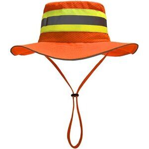 Unisex High Visibility Reflective Bucket Hat Mesh Wide Brim Work Safety Boonie