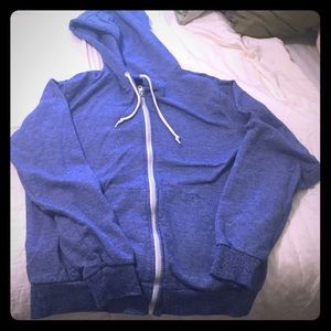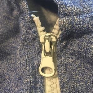 This Urban Outfitters Unisex zip up is incredibly warm! The heathered deep sky blue color makes it versatile enough for anyone to wear and the white zipper adds a splash of uniqueness. Only wear is on the actual zipper itself where the color has chipped off. Excellent condition other than that!
