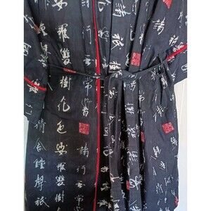 Unisex Japanese Yukata Kimono Robe Wrap Jacket Black Red One Size Vintage 1987
