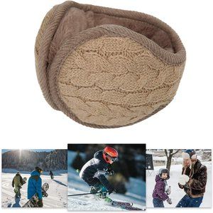 Unisex Khaki Warm Knit Cashmere Adjustable Wrap Outdoor Fur Earwarmer