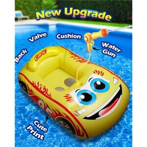Unisex Kids Pool Float with Water Gun, Inflatable Ride-on Swimming Pool Toy Car