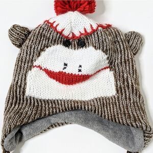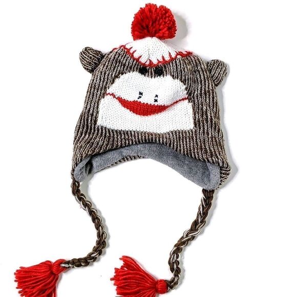 Unisex Knit Sock Monkey Hat With Earflaps And Braids