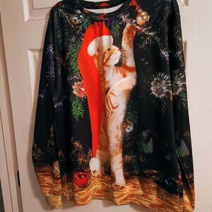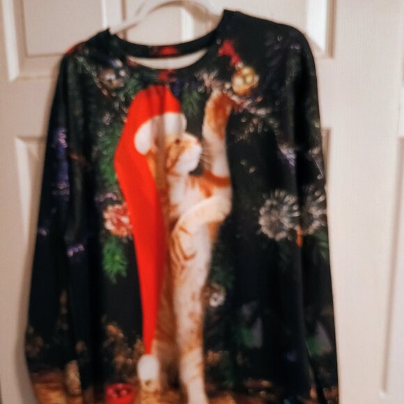 Unisex Long Sleeve Christmas Shirt, Large, Orange Cat, New