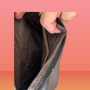 It has a long adjustable crossbody strap, definitely unisex. Perfect for international travel or everyday. The last picture on sweater is indicative of strap length relative to my mannequin. It is “adjusted “ about 6” shorter than full length. Never used. NWOT