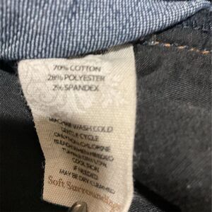 Elevate your everyday style with these versatile straight-leg jeans, perfect for any casual occasion. Crafted for comfort and ease, they feature a classic blue hue with a medium fabric wash that pairs effortlessly with your favorite tops. The frayed hem adds a touch of edginess to your look, while the blend of cotton, polyester, and spandex ensures a snug yet stretchy fit. The zip closure secures the jeans at a flattering mid-rise, making them a go-to for unisex adults seeking both fashion and function. Pre-owned with a waist measuring 38”, an inseam of 23”, and a rise of 6”, these jeans from Soft Surroundings are ready to complement your wardrobe.