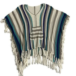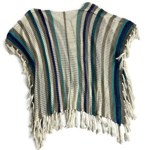 Unisex Multi Striped Fringe Knit Poncho One Size Fits All