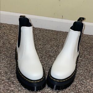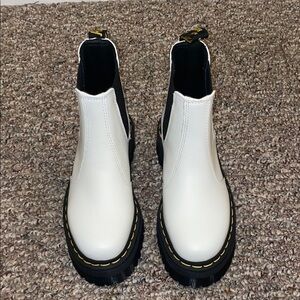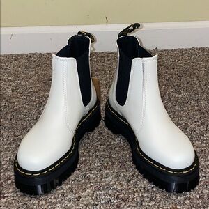 Unisex New Dr. Martens White Quad Smooth Leather Platform Chelsea Boots M4 W5