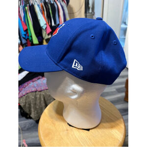 This is a pre-owned New Era 9FORTY Toronto Blue Jays baseball cap. It features a blue color with the Blue Jays logo embroidered on the front. The cap has a curved brim and an adjustable strap at the back. The New Era logo is stitched on the side. The material is 100% polyester. There are no visible stains or tears.